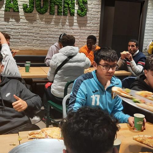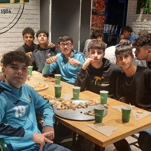 Nuestro gran conjunto juvenil, ayer celebró el cierre de temporada, con una cena muy especial, a base de hidratos de carbono ( pizzas), es muy bonito y emocionante, ver la union que hay en el equipo, grandes amistades, en eso no nos gana nadie, en lo deportivo si, es una cuestión a mejorar, de cara a la nueva temporada que viene.