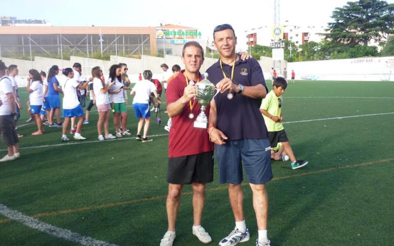 Nuestros primeros éxitos internacionales, como entrenadores del Rayo...torneo Lloret del Mar (2013), Miguel y un servidor...