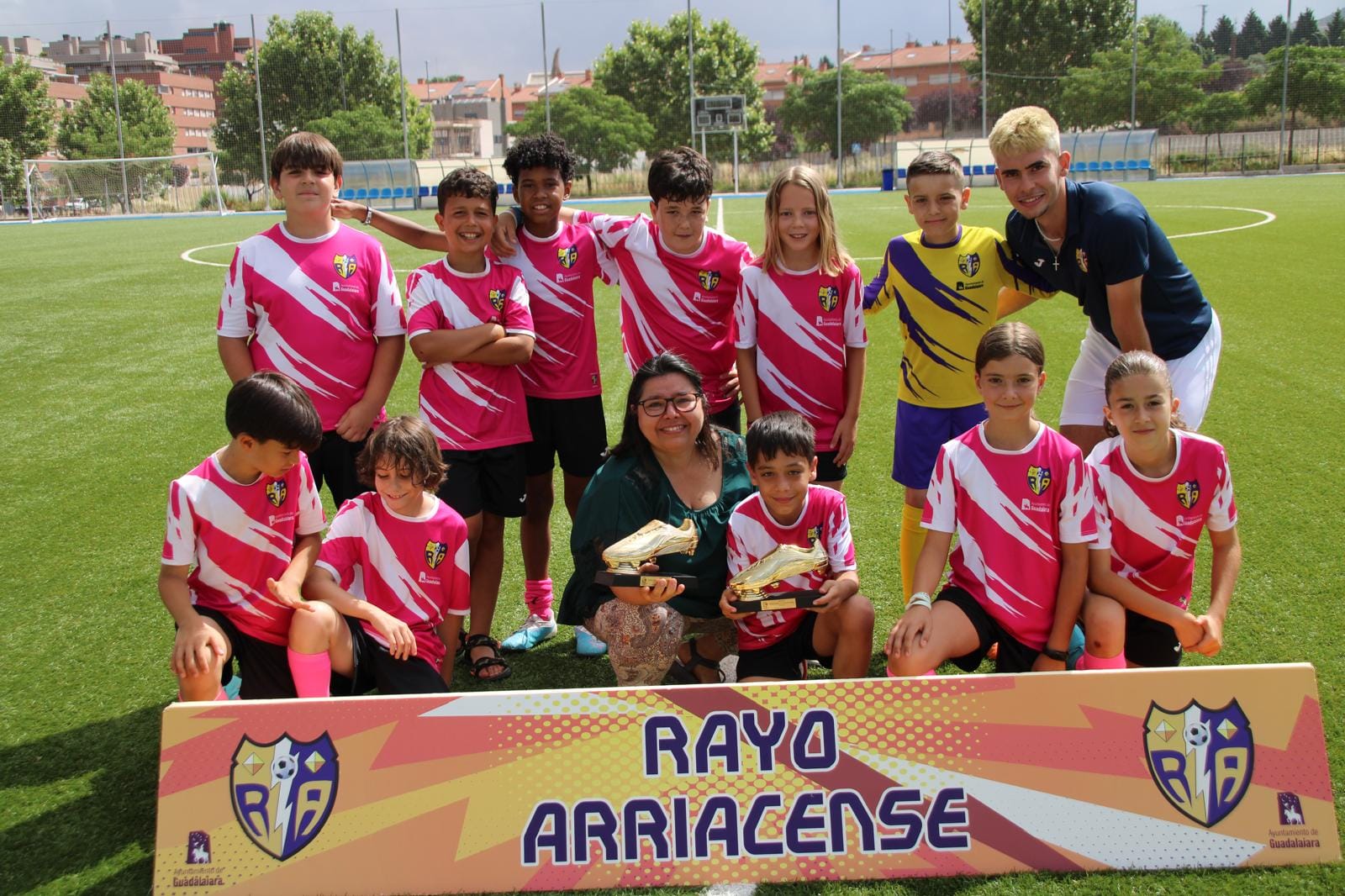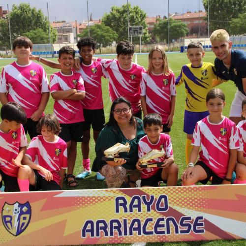 El pasado domingo 9 de junio, el Club Deportivo Rayo Arriacense presentó sus equipos en la instalación municipal de la Fuente de la Niña, con especial mención al alevín 2013 Iván, que cuenta con dos jugadores muy especiales, Hugo y su hermano Diego, siendo ambos galardonados por el club y aclamados por la grada!