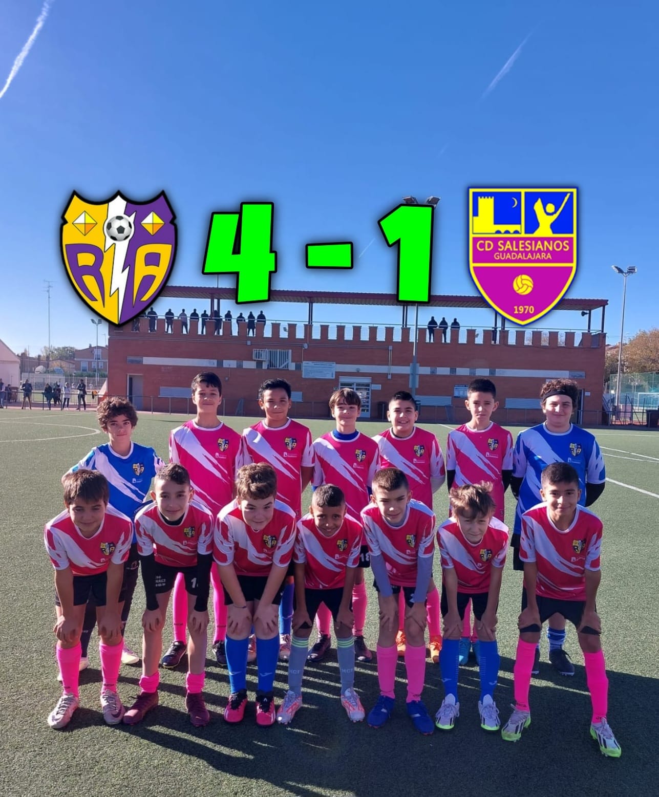 Partido al que se iba con total confianza en nosotros mismos, tras el partido anterior a pesar de que el resultado no fue favorable. Comenzamos el partido ganando en una acción en la que conseguimos finalizar a portería, no obstante empataría el salesianos el partido, tras una conducción de su central sin oposición hasta nuestro área para hacer un tiro pegado al palo imposible para nuestro portero. Antes de acabar la primera parte conseguimos adelantarnos de nuevo en el marcador con un gol de falta. Tras el descanso el equipo rival salió muy enchufado e intentó por activa y por pasiva empatar de nuevo el partido, pero supimos contener bien sus ataques, y en una falta conseguimos marcar el 3 1 para darnos un respiro y cierto margen. Y en los minutos finales metemos el 4 1 definitivo con un gol desde fuera del área para finalizar el partido.